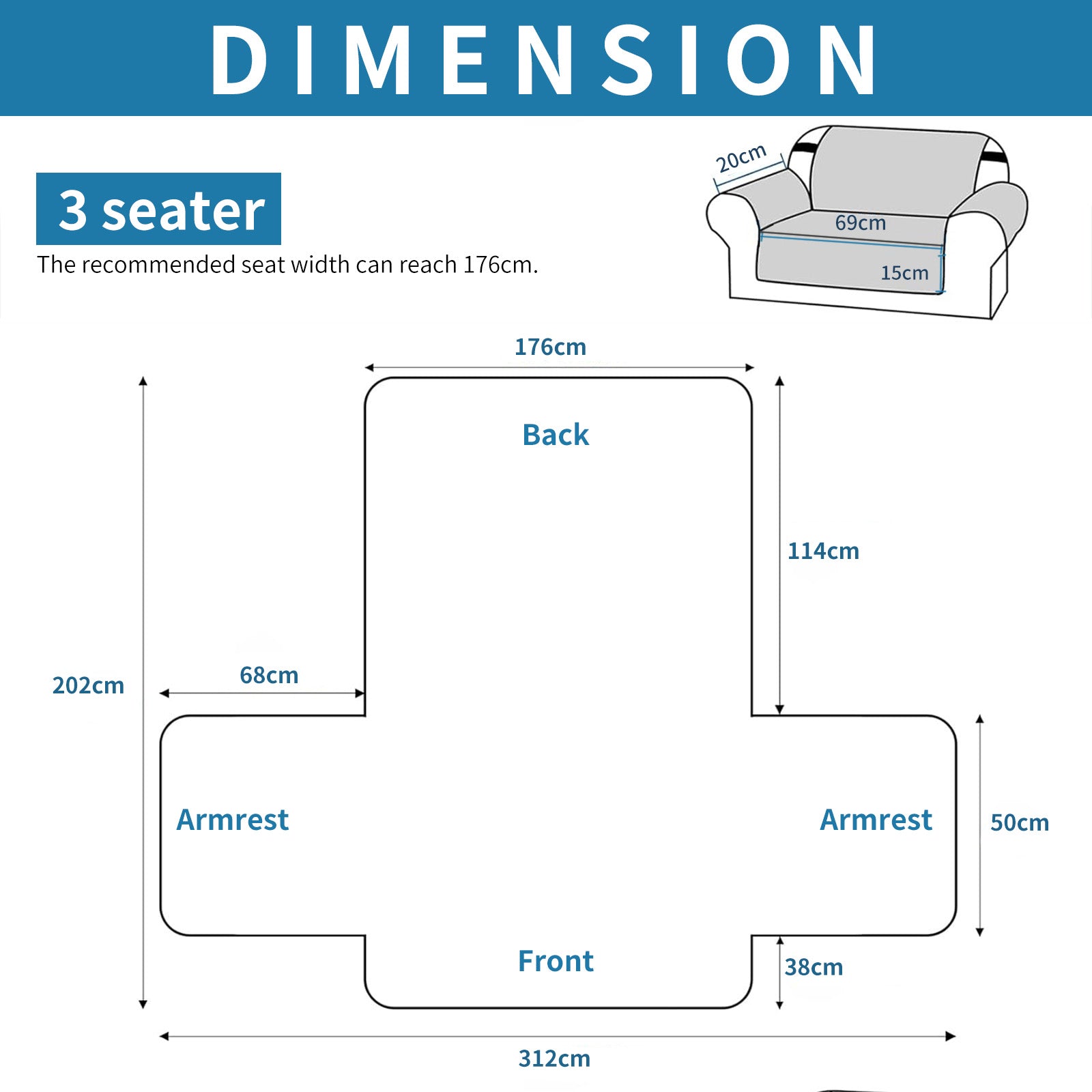 3-Seater Sofa Fit: 176cm Seat Width