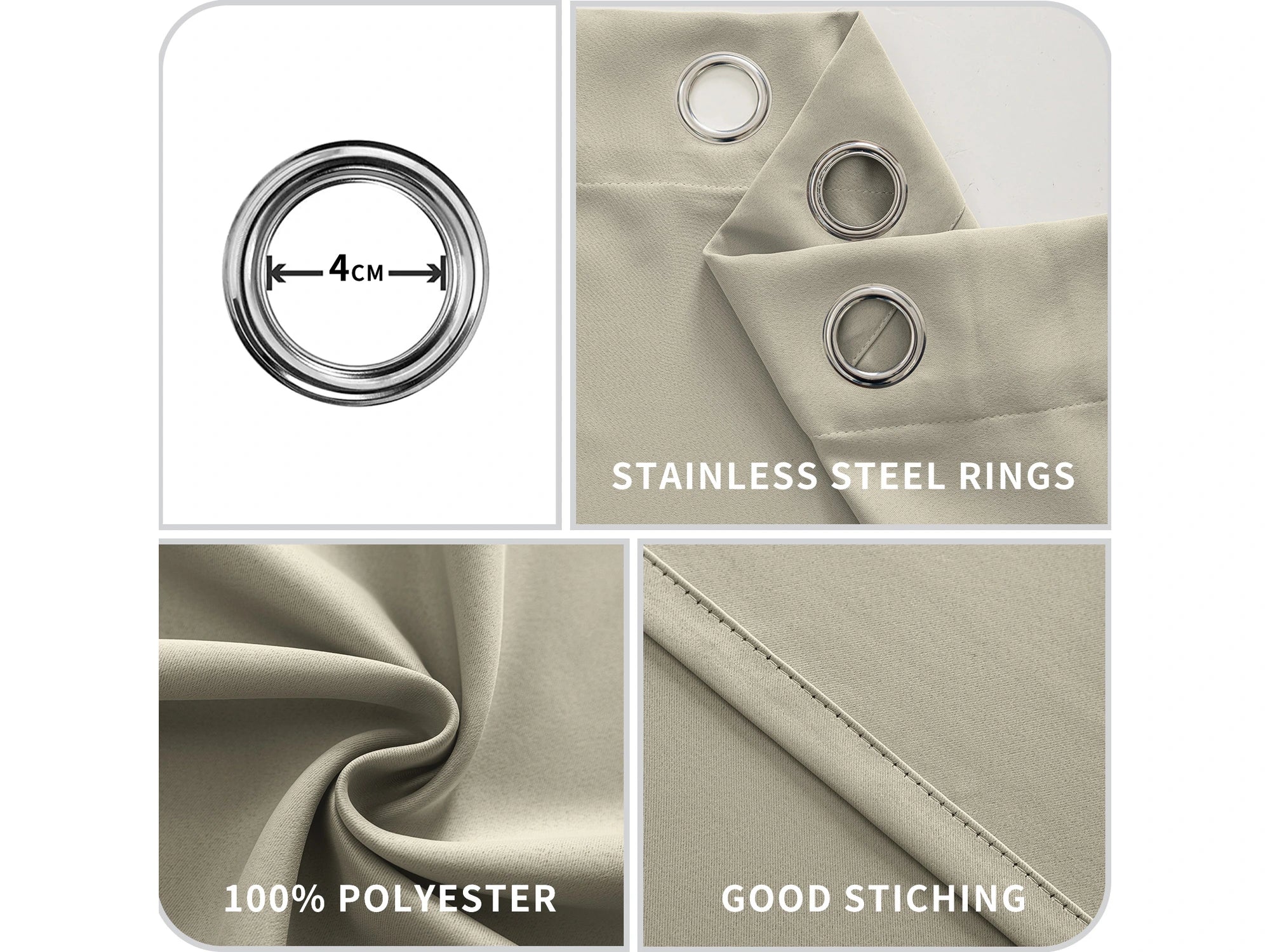 - 8 ojales (4 cm) que encajan con barras de cortina estándar.