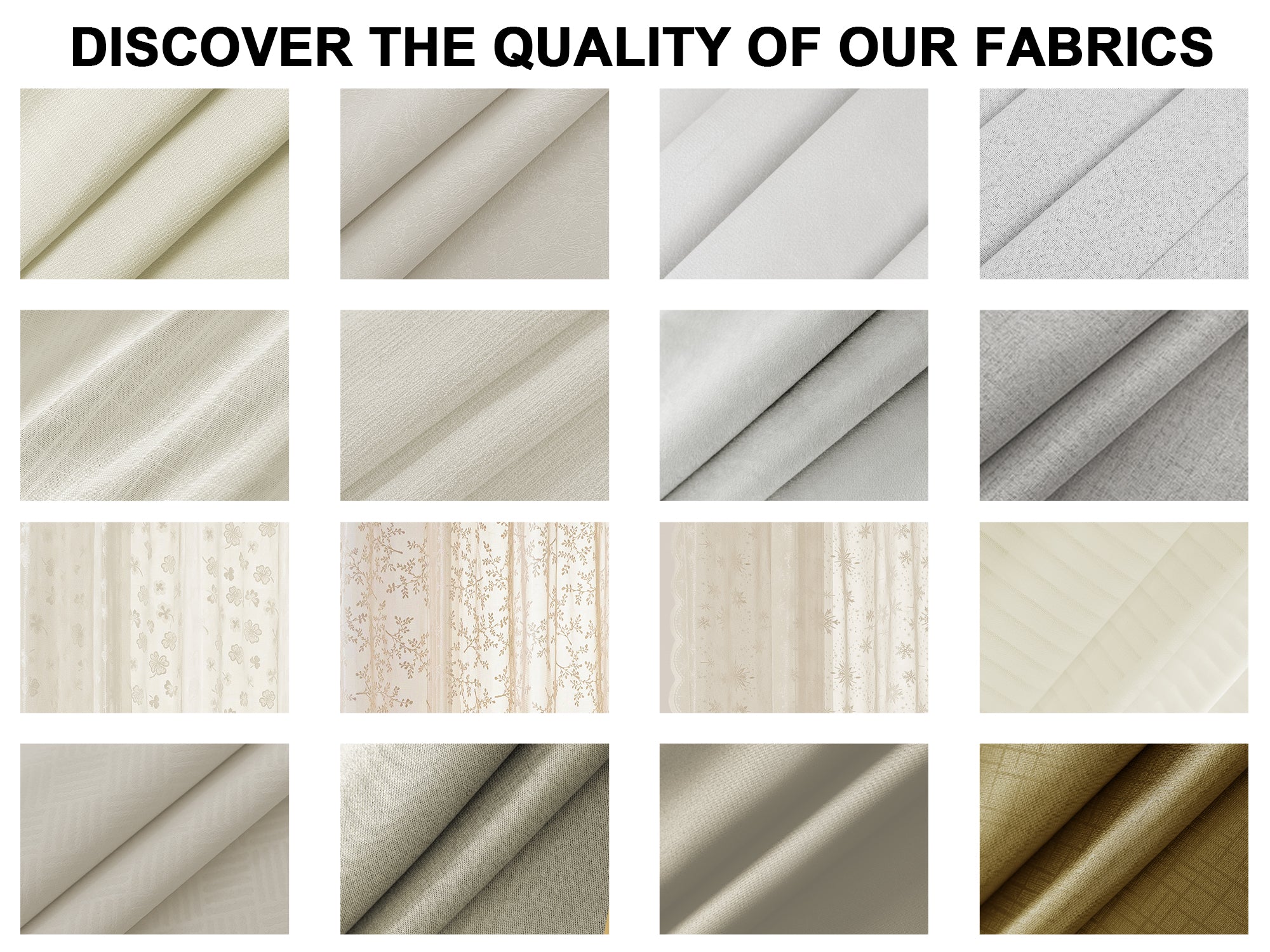 Discover multiple fabric types in one collection—each with its own character. Pick the one that fits your lifestyle: light-filtering softness, refined smoothness, or statement texture. Easy to style, made to last.