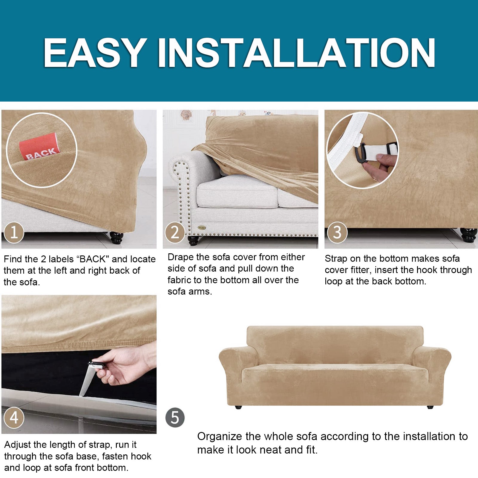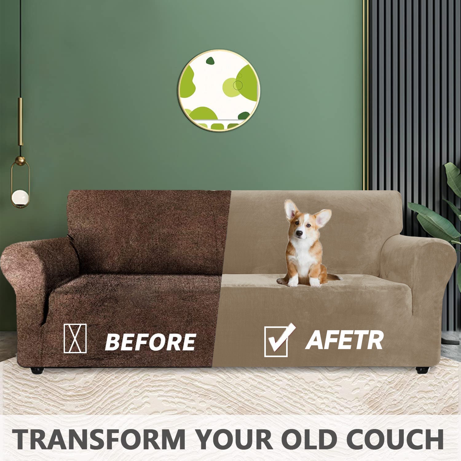 YSTYLE Velvet Cubierta de Sofá para 3 Personas – Ajuste Elástico, Anti-Rasguño, Amigable con Mascotas, Antideslizante, Lavable