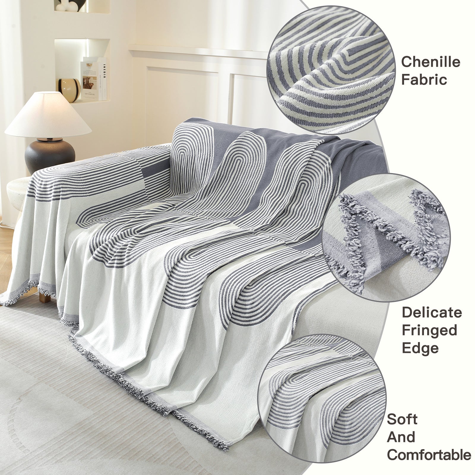 - Fabricado de100% poliéster premiumEsta funda para sofá extra grande ofrececobertura completa de 360°para sofás de 4 asientos. Susuave, duradero y resistente a las manchasEl tejido combina comodidad con funcionalidad, doblando como unmanta para sofá, edredón o funda decorativa.Fácil de instalar, lavable e ideal parauso durante todo el añoen hogares conmascotas o niños.