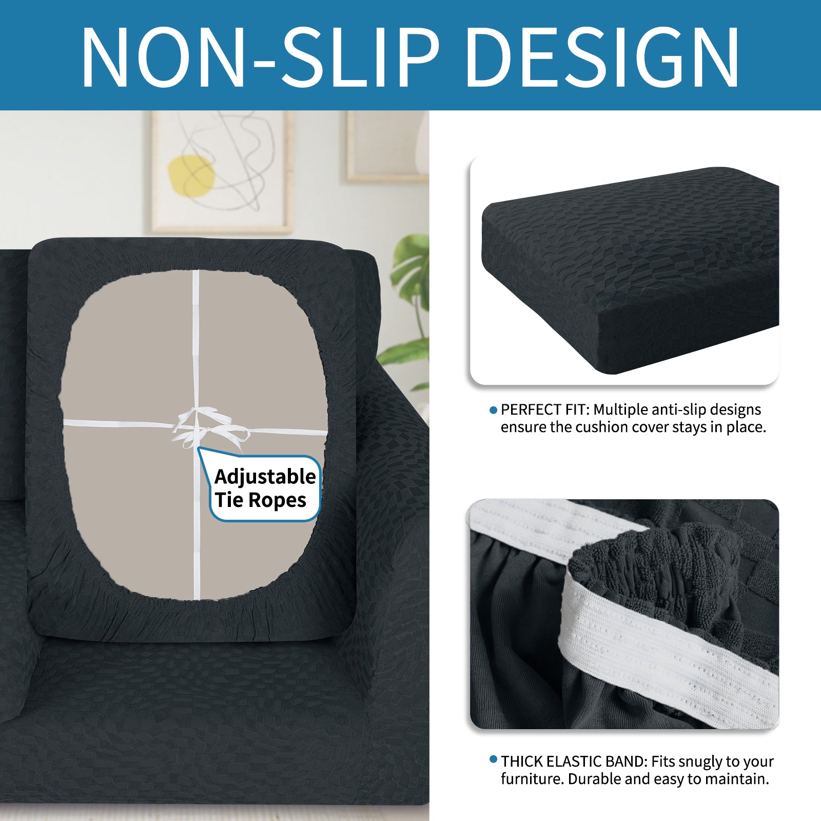 - Design antidérapant : Équipée d'une bande élastique exclusive qui permet à la housse de mieux s'ajuster et de rester en place même lorsque des enfants ou des animaux jouent.