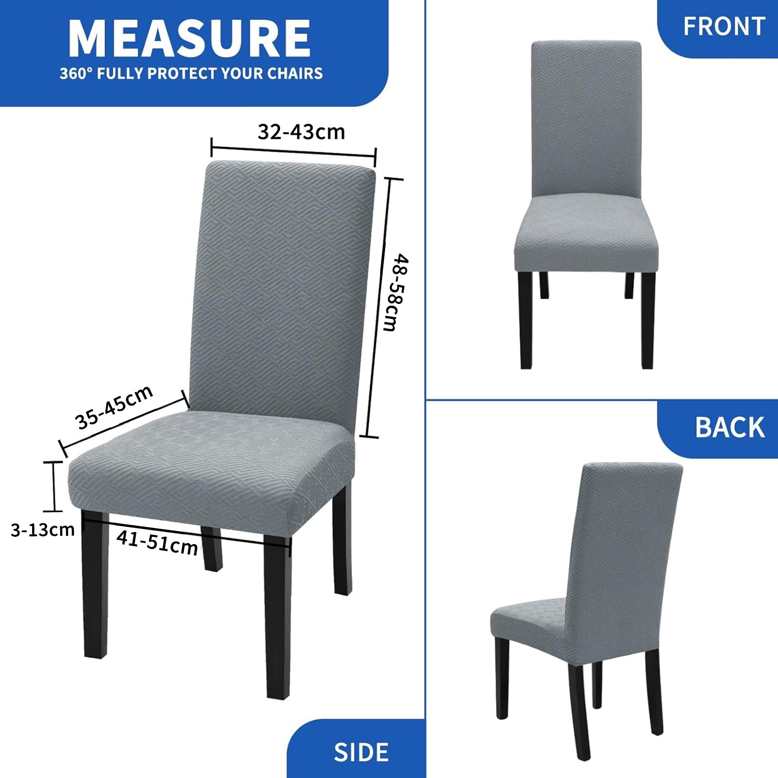 Ces housses de chaise conviennent à la plupart des chaises, assurant un ajustement parfait avec des dimensions de hauteur du dossier de 48 à 58 cm, largeur du dossier de 32 à 43 cm, longueur de l'assise de 35 à 45 cm et largeur de l'assise de 41 à 51 cm. Fabriquées à partir d'un tissu de haute qualité composé de 92 % de polyester et de 8 % d'élasthanne, elles offrent une sensation douce, confortable et lisse. Ces housses sont respirantes, anti-bouloches et résistantes au rétrécissement ou au décoloration, ce qui en fait le meilleur choix pour rafraîchir votre mobilier.