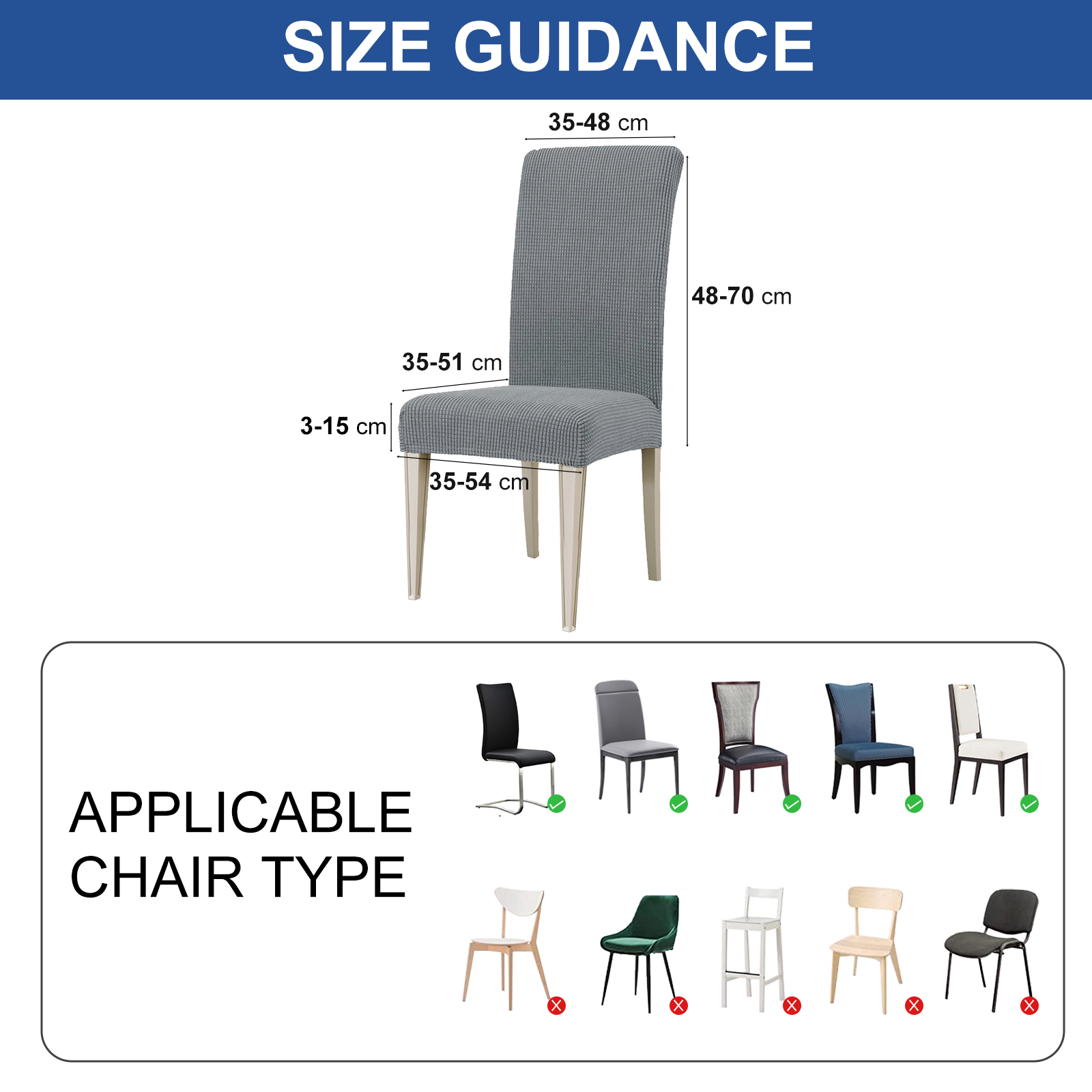 Le nostre coperture per sedie sono realizzate in materiale elastico che si adatta a molte dimensioni e forme di sedie. Anche se alcune sedie hanno una forma irregolare, le coperture si adattano perfettamente senza grinze. Sono progettate per aggiornare i tuoi mobili in modo da adattarsi al tuo stile in evoluzione, combinando durata e decorazione in modo impeccabile.