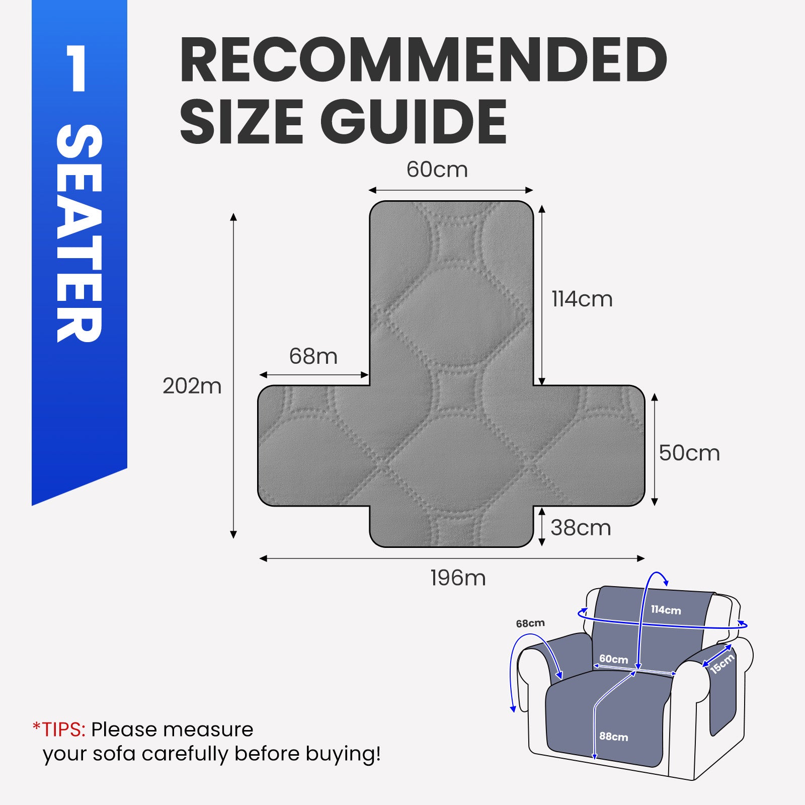 - Aggiornamento antiscivolo: presenta un tessuto antiscivolo e punti adesivi sul retro, oltre a una cintura elastica regolabile da 135 cm che fissa la fodera come una fodera elastica per divano .