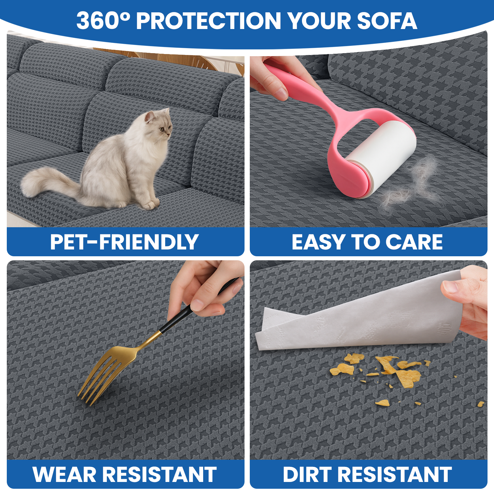 - Protezione completa: Offre una copertura totale per bloccare le macchie e l'usura quotidiane, prolungando efficacemente la durata dei cuscini del divano.