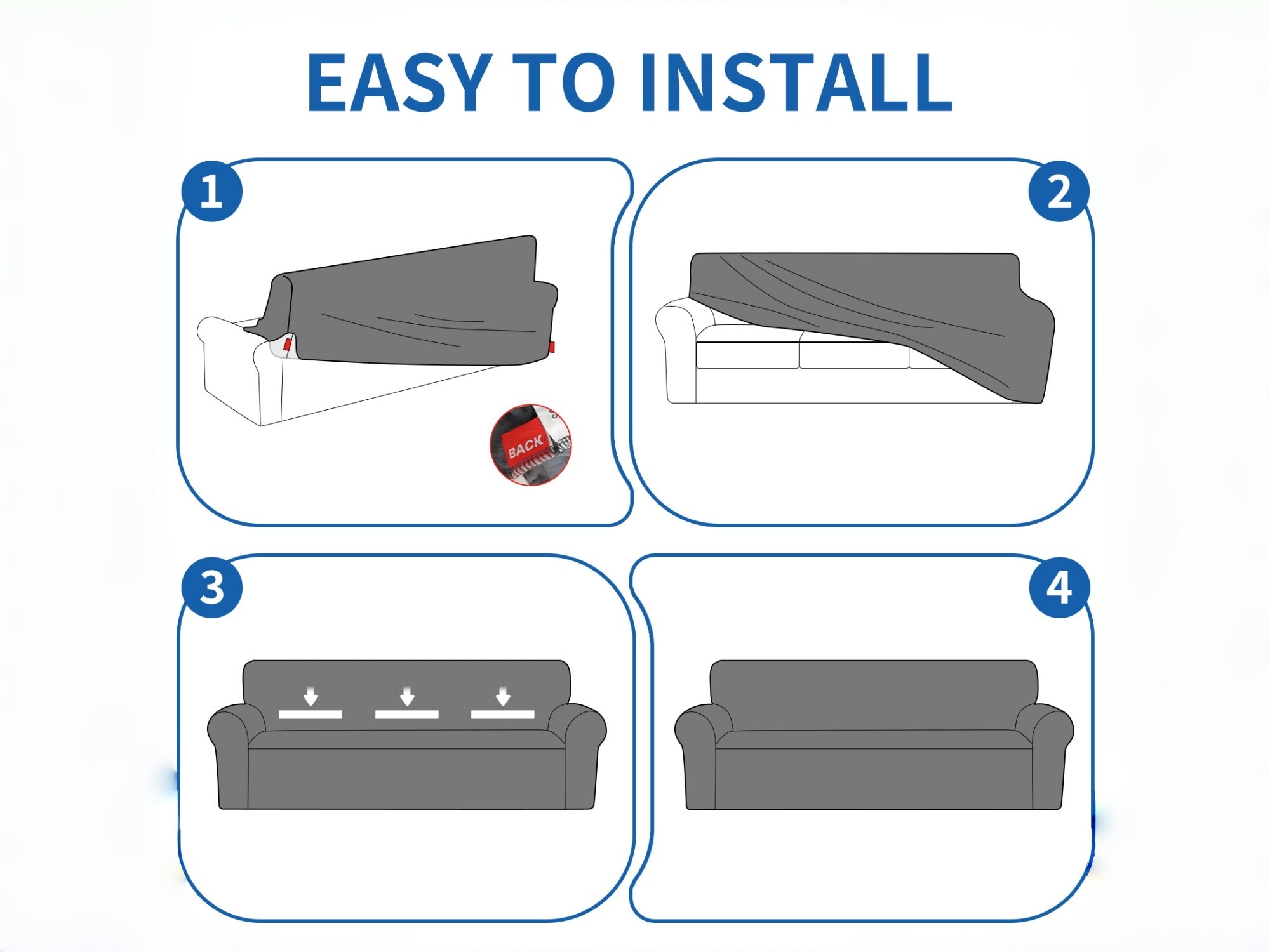 Most covers feature elastic edges or adjustable straps for a secure fit. Installation images or videos are available on the product page to guide you step by step.