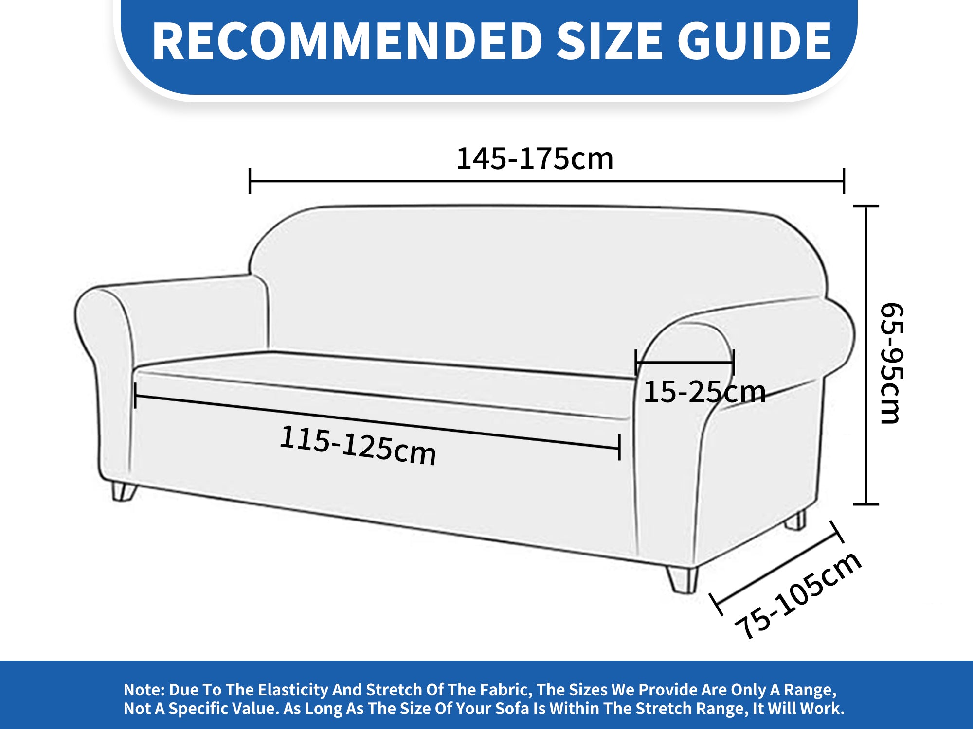 The universal sofa cover is suitable for most 4 seater armchairs. Please ensure to measure your sofa and check the product image to verify the appropriate size before purchasing. If you have any doubts about the dimensions, contact our customer service. Available in a variety of vibrant solid colors, this cover is perfect to match an accent chair or a brightly patterned rug.