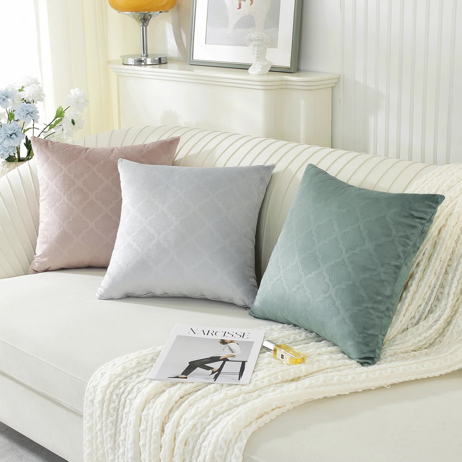 - Crafted from high-quality velvet microfiber, these cushion covers are ultra-soft, breathable, and hypoallergenic, with a hidden zipper for a seamless look. The modern geometric design adds a decorative touch, while the wrinkle-free finish keeps them looking tidy—perfect for sofas, beds, and chairs.